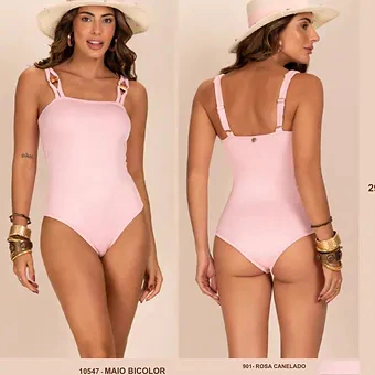 10547-MAIO COM ALÇA LARGA E DETALHES SOFISTICADOS Este maiô apresenta alças mais largas e diferenciadas, com detalhe em peça de acrílico e regulador que proporciona ajuste ideal e conforto. Possui bojo removível para maior versatilidade e acabamento em viés com cor diferenciada, que destaca o design com estilo e sofisticação. Disponível nas versões: Preto Atoalhado (96% Poliéster | 4% Elastano) Rosa Canelado (91% Poliamida | 9% Elastano) – modelo não bicolor