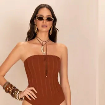 MAIO TOMARA QUE CAIA COM AMARRAÇÃO E DETALHE FRONTAL ARTESANAL Este maiô tomara que caia destaca-se pela amarração nas costas, que garante ajuste perfeito e conforto. O detalhe frontal acrescenta charme ao design, enquanto o trabalho manual nas costuras valoriza a peça com um toque artesanal e exclusivo. Disponível nas cores Preto Atoalhado e Âmbar.Composição: 96% Poliéster | 4% Elastano
